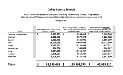- ↑ Dallas Morning News, "Saving Dallas County Schools will save our districts money on buses," October 20, 2017