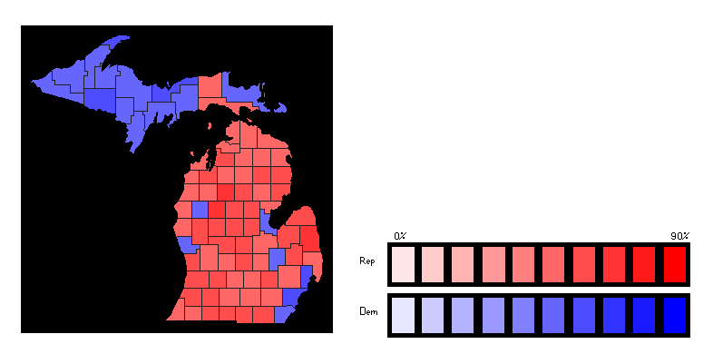 A map of the results of the 1958 gubernatorial election in Michigan.