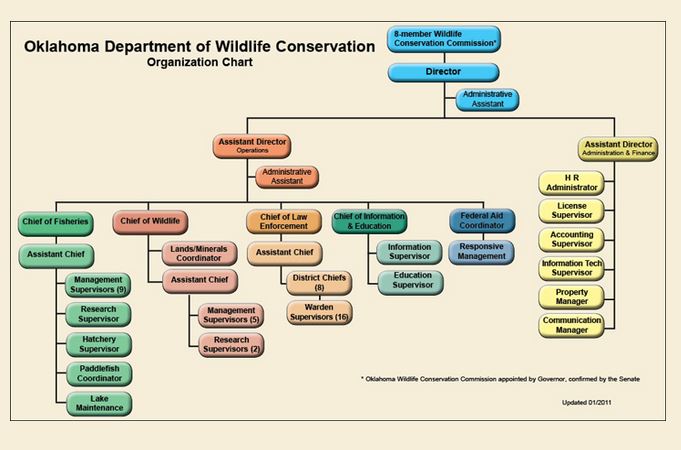 This image comes from http://www.wildlifedepartment.com/aboutodwc/orgchart.htm. It is an image of an official state government document, such as the text of a law, statute, amendment or legal ruling. It has been uploaded under the good-faith belief that reproducing an image of an official state government document such as a law, statute, amendment or legal ruling does not violate the copyright laws of the state in question.