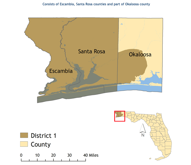 This image comes from http://www.flsenate.gov/senators/districts and is in the public domain because it is a State of Florida "public record made or received in connection with the official business of any public body, officer, or employee of the state, or persons acting on their behalf, [which includes the work of] the legislative, executive, and judicial branches of government and each agency or department created thereunder; counties, municipalities, and districts; and each constitutional officer, board, and commission, or entity created pursuant to [Florida] law or [its] Constitution" and does not fall into any of the various categories of works for which the legislature has specifically permitted copyright to be claimed.