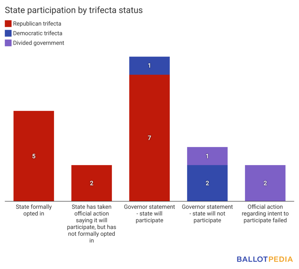 Governors in three states—New Mexico, Oregon, and Wisconsin—have all said they would not opt into the program. Oregon and New Mexico have Democratic trifectas, while Wisconsin has a divided government.