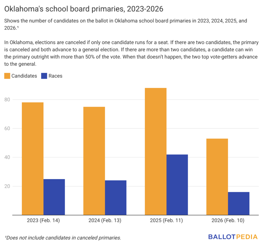Ballotpedia is covering all school board elections in the Sooner State in 2026 (including Tulsa Public Schools, Oklahoma City Public Schools, and Edmond Public Schools—the state’s three largest by student enrollment). Districts will hold primaries on Feb. 10 and general elections on April 7.