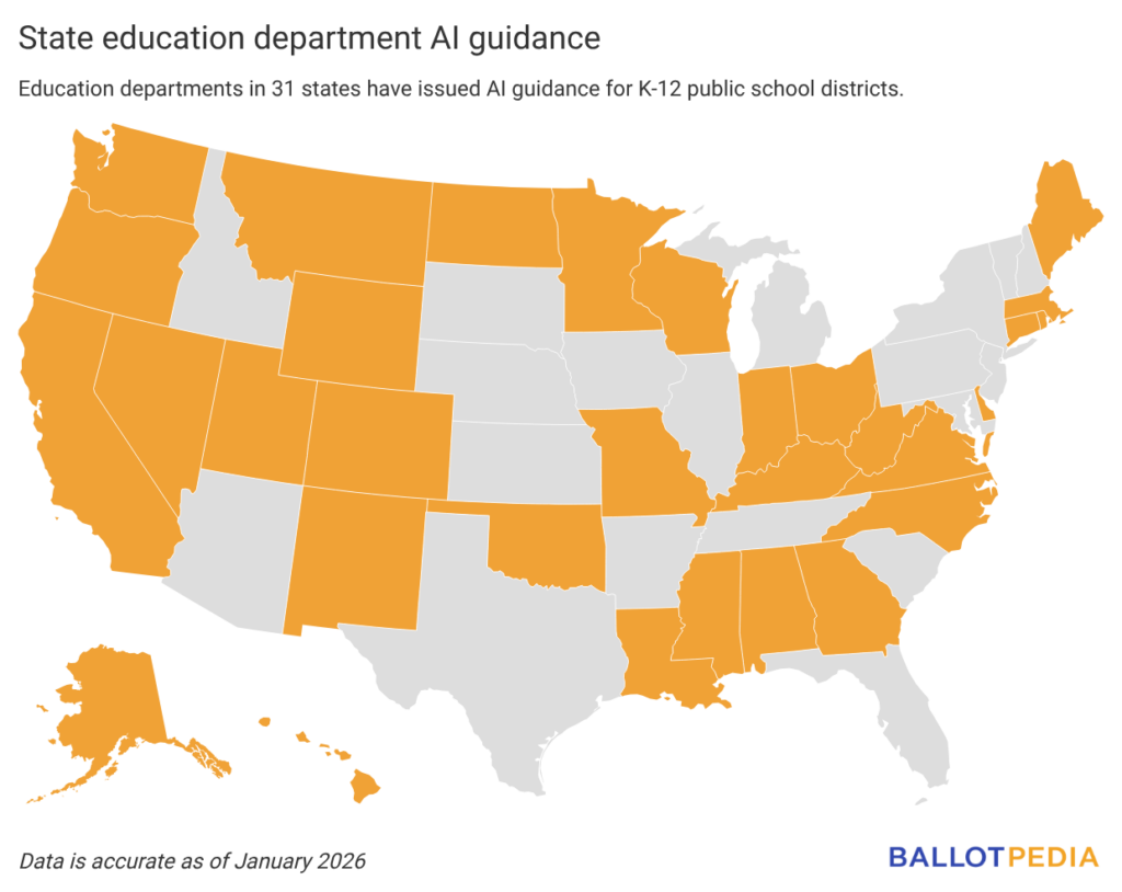 - Thirty-one states have released official AI guidance for K-12 public schools