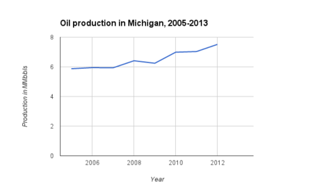 The graphs below detail oil and natural gas production in Michigan from 2000 to 2012.