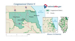 This was the first election using district maps based on data from the 2010 Census. Illinois' 9th Congressional District consists of all of Evanston, Skokie, Niles, Lincolnwood, Morton Grove, Park Ridge and Norridge. It is also made up of parts of Wilmette, Northfield, Glenview, Golf, Rosemont and Des Plaines, as well as much of the North Side of City of Chicago.[4]