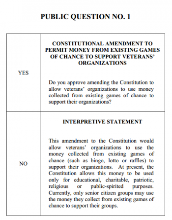 Constitutional Amendment to Permit Money from Existing Games of Chance to Support Veterans’ Organizations |