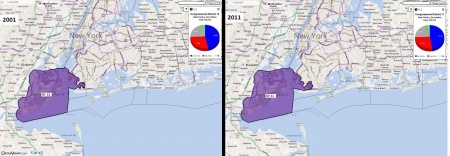 - ↑ Moonshadow Mobile's CensusViewer, "New York's congressional districts 2001-2011 comparison"