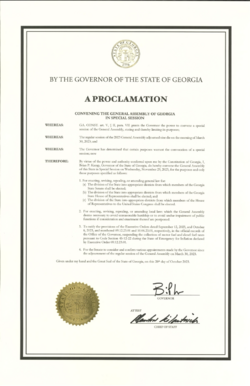 When a special legislative session is called, the governor typically issues a "convening proclamation" that expresses the subject of the special session as well as the special session's duration, if required by law.